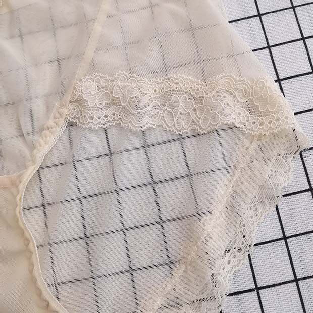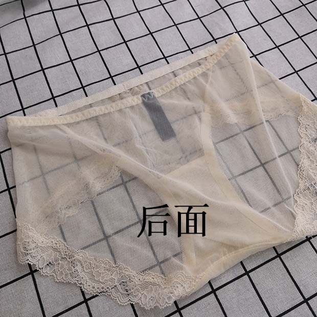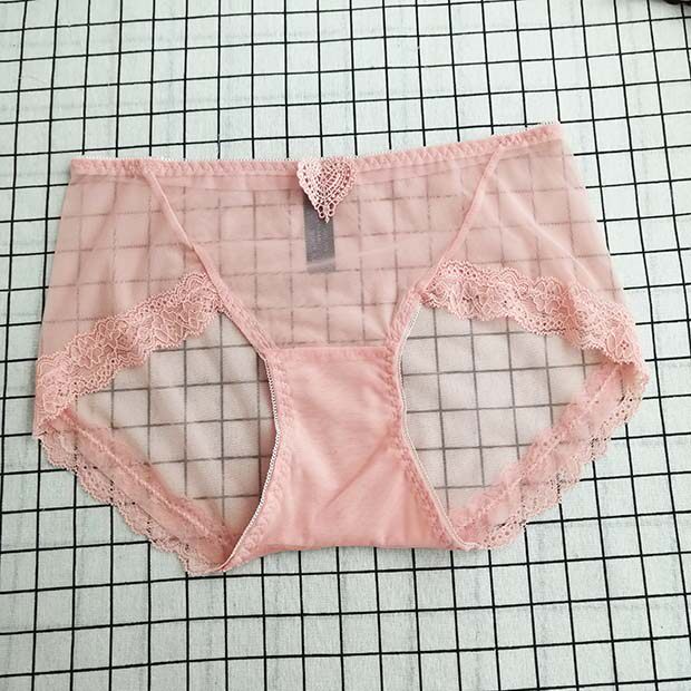Underwear Female Lace Side Middle Waist Mesh Yarn Clairvoyant Super Slim Transparent Full Overdraft Fire Hot Sexy Cute Heart-shaped Small Inner