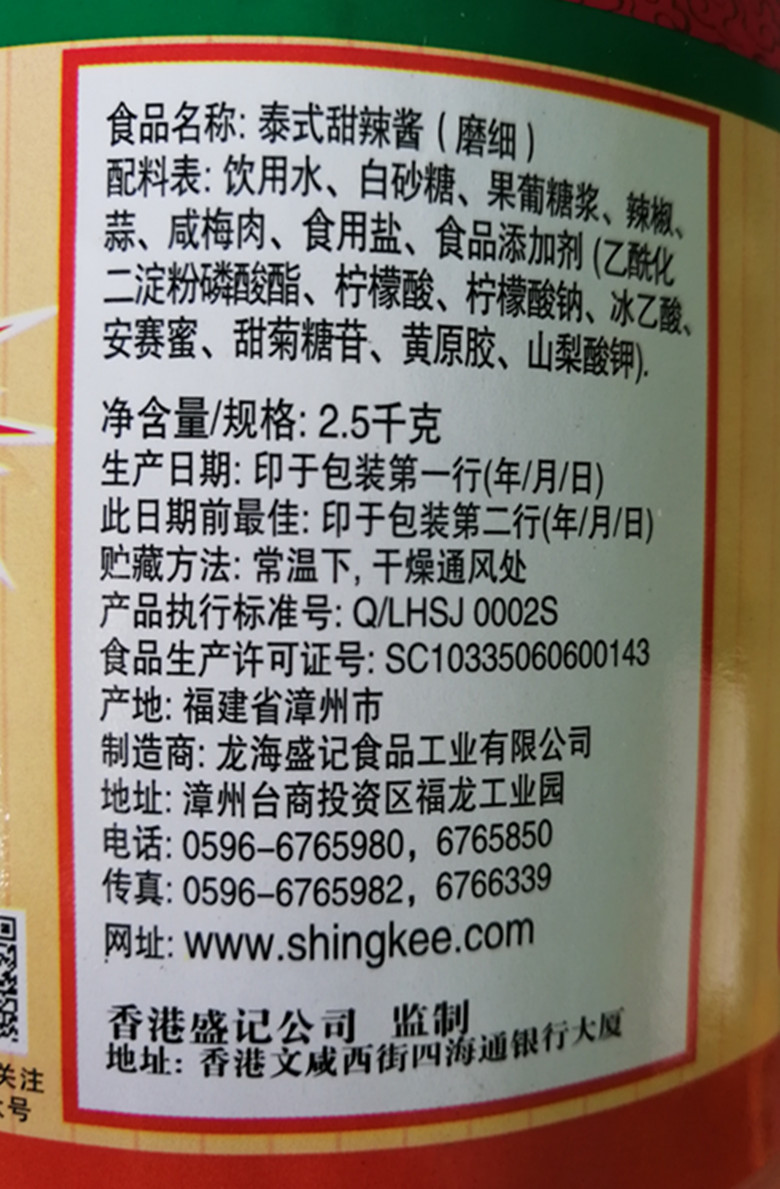 5 catties large bottle of commercial packaging Shengji Thai sweet and spicy sauce seedless ground hamburger pizza French fries dipped in sauce