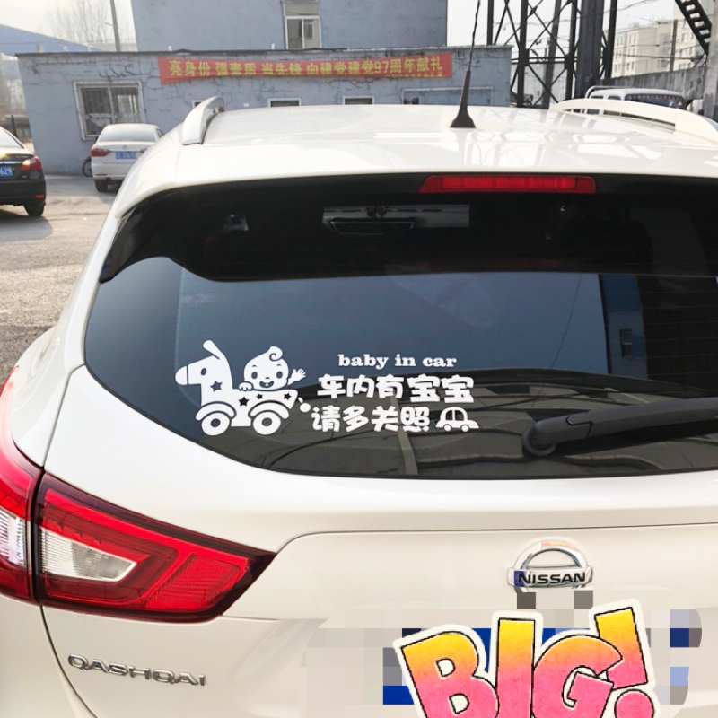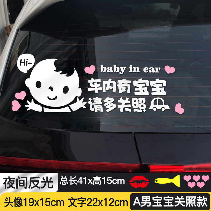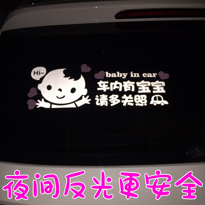 There are baby car stickers baby in car rear window paper reflective patch warning stickers