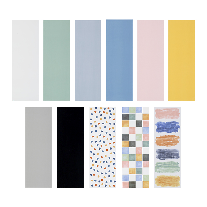 White Blue yellow black pink Light gray light green Light blue concave and convex particles Plane particles concave and convex checkered plane painted 300*600 Blue 300*300 black and white tiles