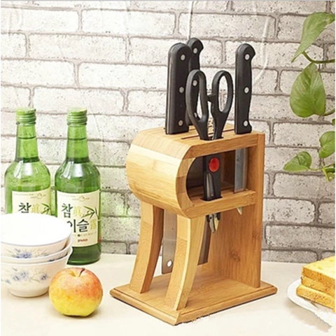 R-shaped bamboo knife holder tool holder Kitchen supplies storage knife holder Multi-function shelf hollow cleaning creative knife holder