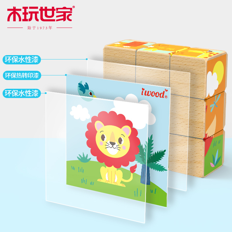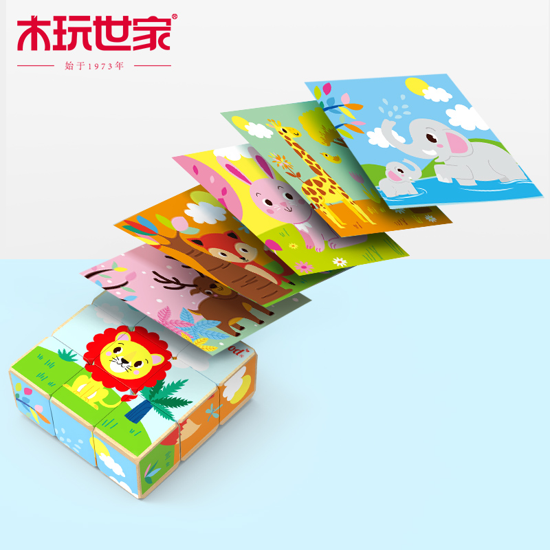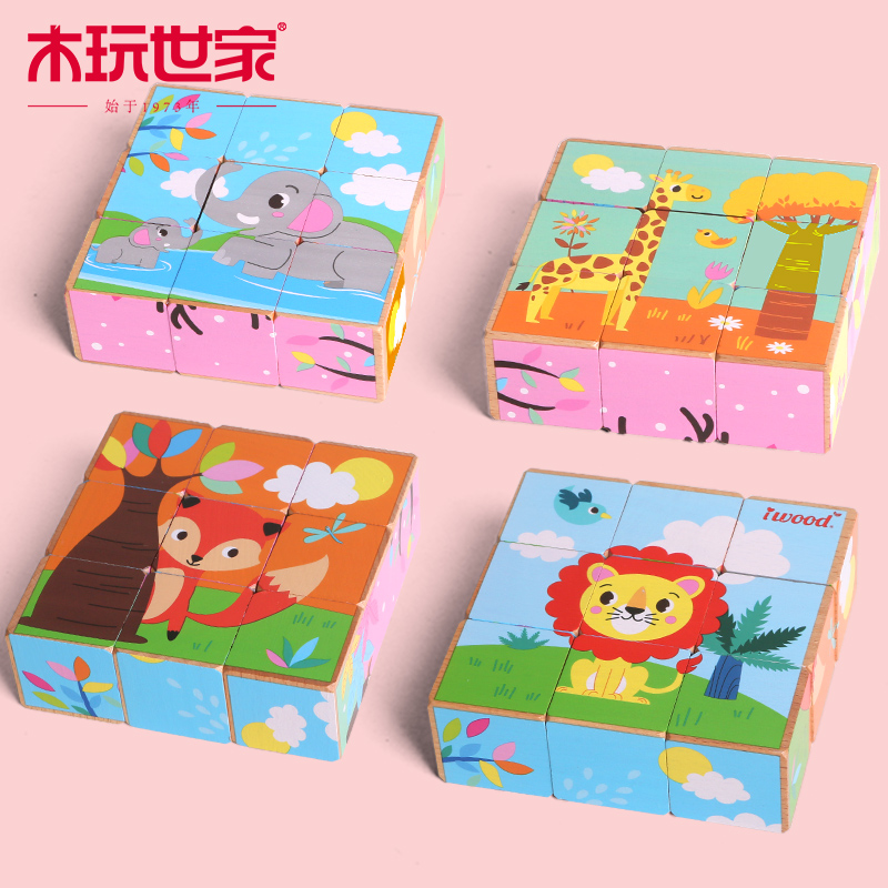Wood play family wooden six-sided painting 3D three-dimensional children's jigsaw puzzle building blocks large particles beech wood children's intellectual toys