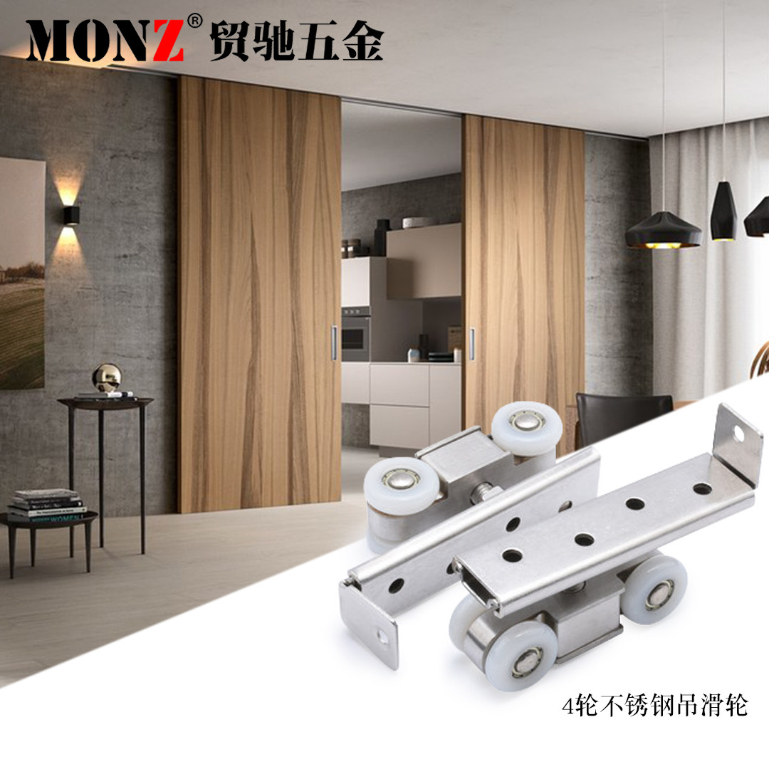 Trade Relaxation Hardware Engineering Accessories Stainless Steel Wooden Door Sliding Door Pulley Sliding Wheels Silent four-wheel suspension wheel track