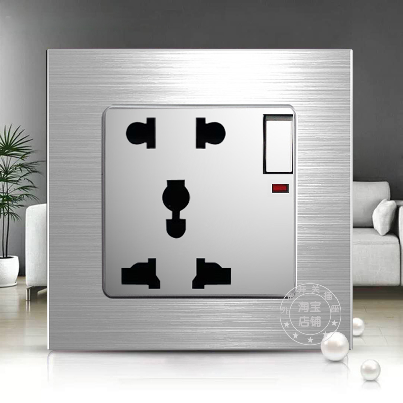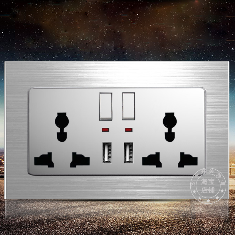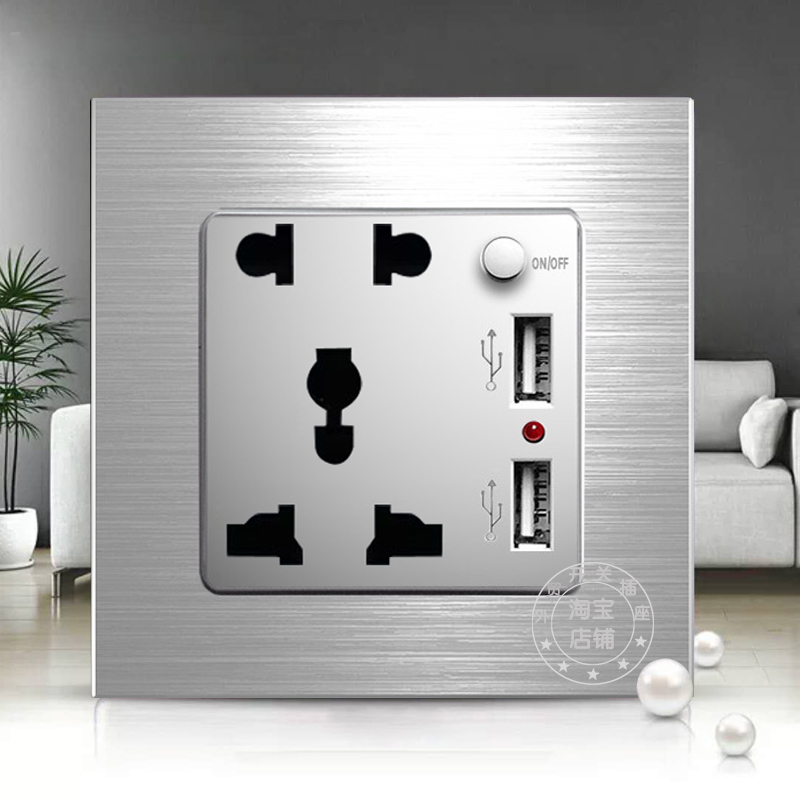 Type 86 silver-gray aluminum wire drawing multi-function five-hole with USB wall plug switch electric panel 13A British Hong Kong socket