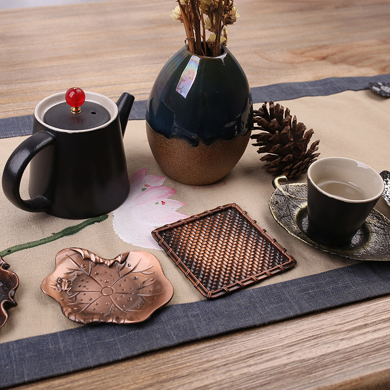 Rhyme the world Alloy coaster Metal cup holder Square creative tea set Imitation copper Sterling silver tea mat Round tea set accessories