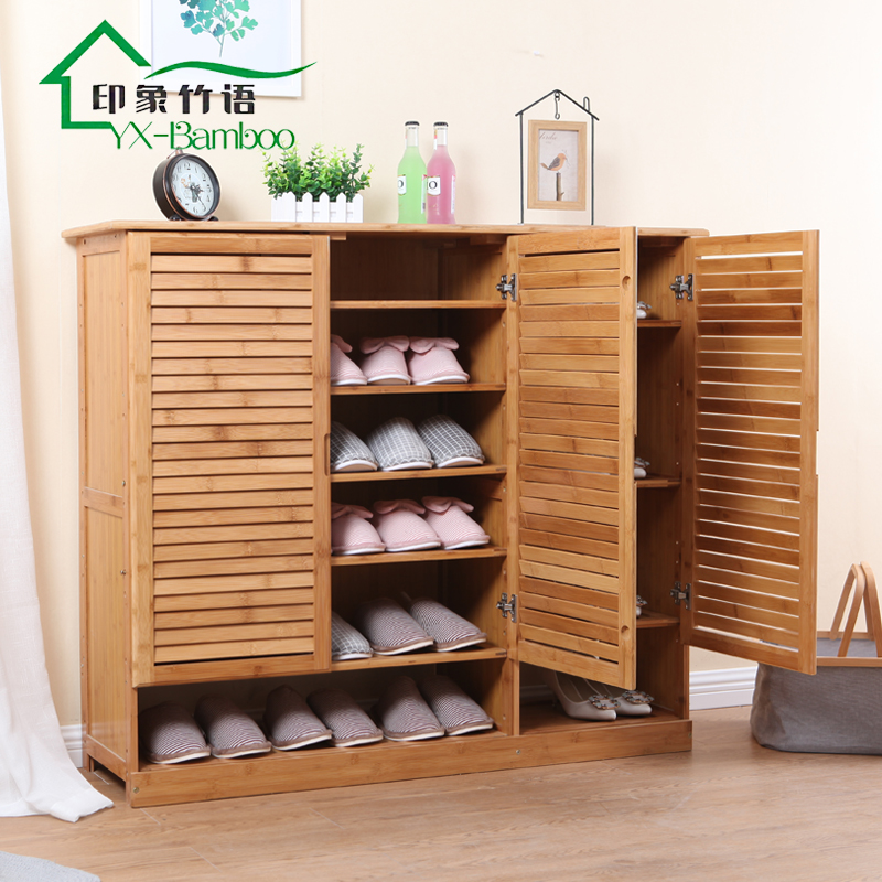 Shoe cabinet containing solid wood domestic shoe cabinet multilayer Nan bamboo shoe rack minimalist modern simple living room multifunctional door hall cabinet