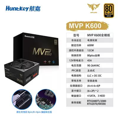 Hangjia MVP K600 rated 600W power supply desktop computer host power gold full module light tone game power supply