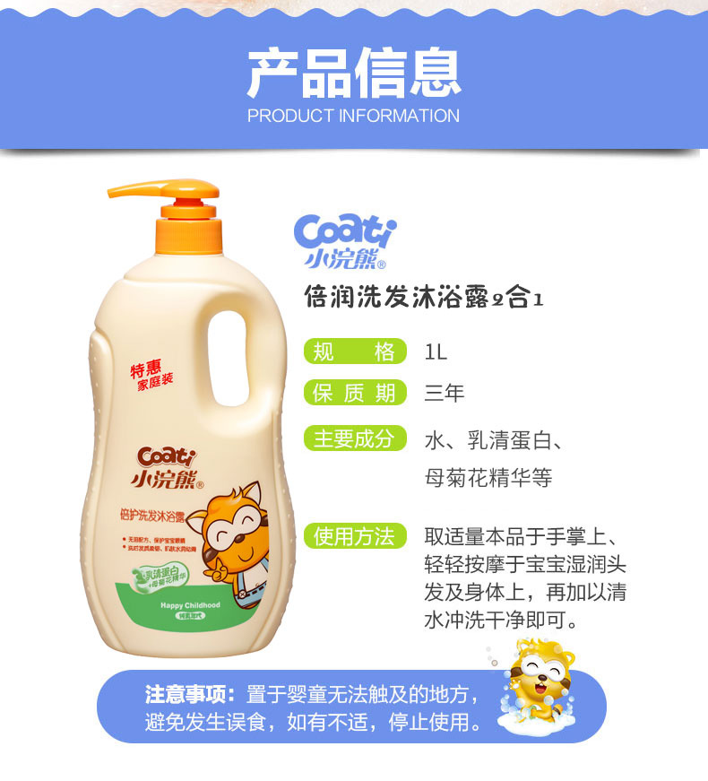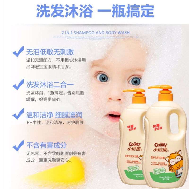 Small raccoons Children's baby shampoo body lotion Two-in-one-1L* 2 bottles of family clothes tearful without tears