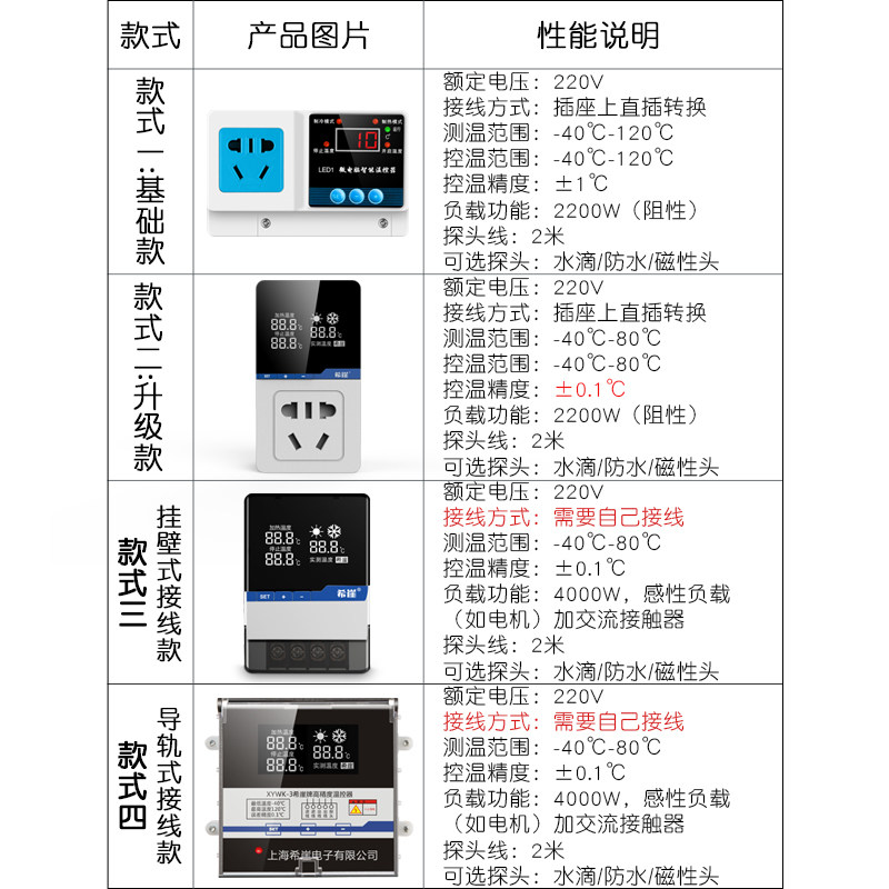 Xiya thermostat Intelligent digital display electronic temperature control instrument switch adjustable temperature controller socket voltage 220v
