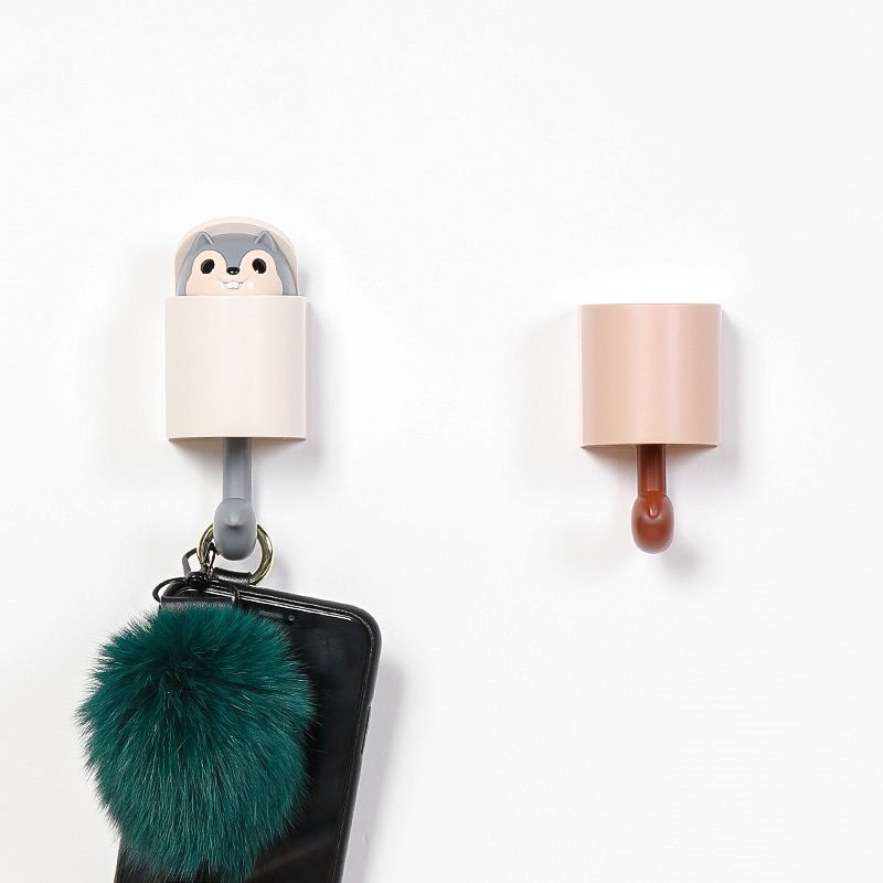 Creative Squirrel hooked adhesive stick-free paste cute cartoon plastic powerful animal door key hanging rack