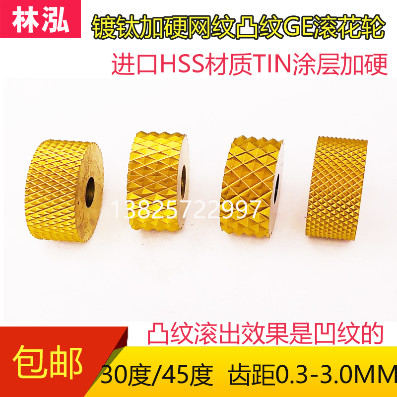 Plated Titanium Plus Hard Single Wheel Mesh knurling wheel lathe embossed knife GE30 45 degrees cam rhombus knurling knife 0 3-3