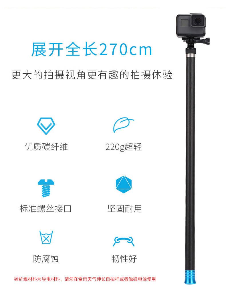 gopro9 8 7 6 insta360 action max DJI action camera 2 7m extra long extension carbon fiber extension holder gopr