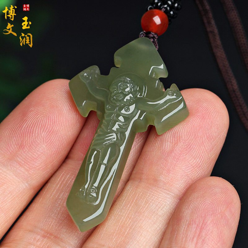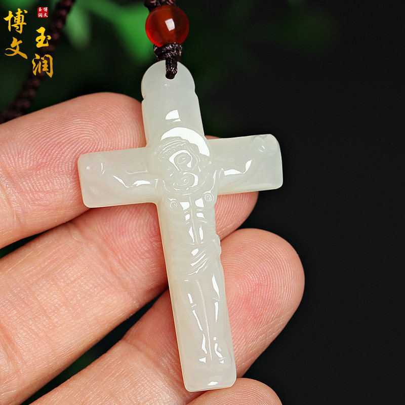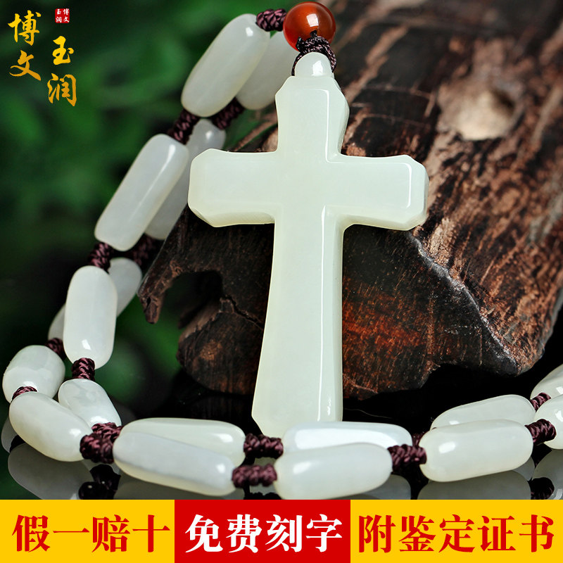 1 White jade flat section with ordinary line lanyard identification certificate 2 White jade flat section with Hetian jade rough necklace identification certificate 3 White jade Jesus Cross identification certificate 4 Jade