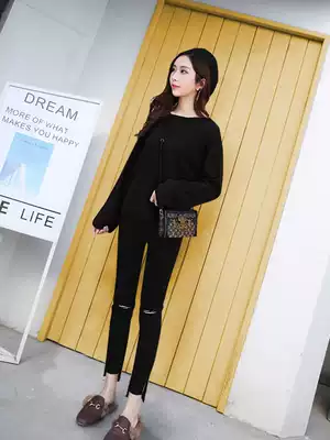 Pregnant women pants spring and autumn thin wear trousers broken hole nine points jeans 2021 New elastic belly pipe pants