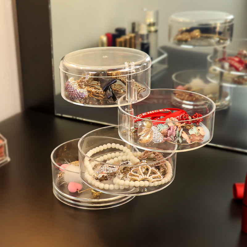 Rotating Transparent First Accessories Box Earrings Ring Hand Alchemy Hair Clip Headwear Hair Ring Travel Portable Ornament Box Finishing Box