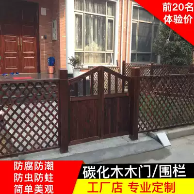 Custom anti-corrosion wood carbonized wood wooden door Custom garden fence wooden fence grid Outdoor courtyard fence double door