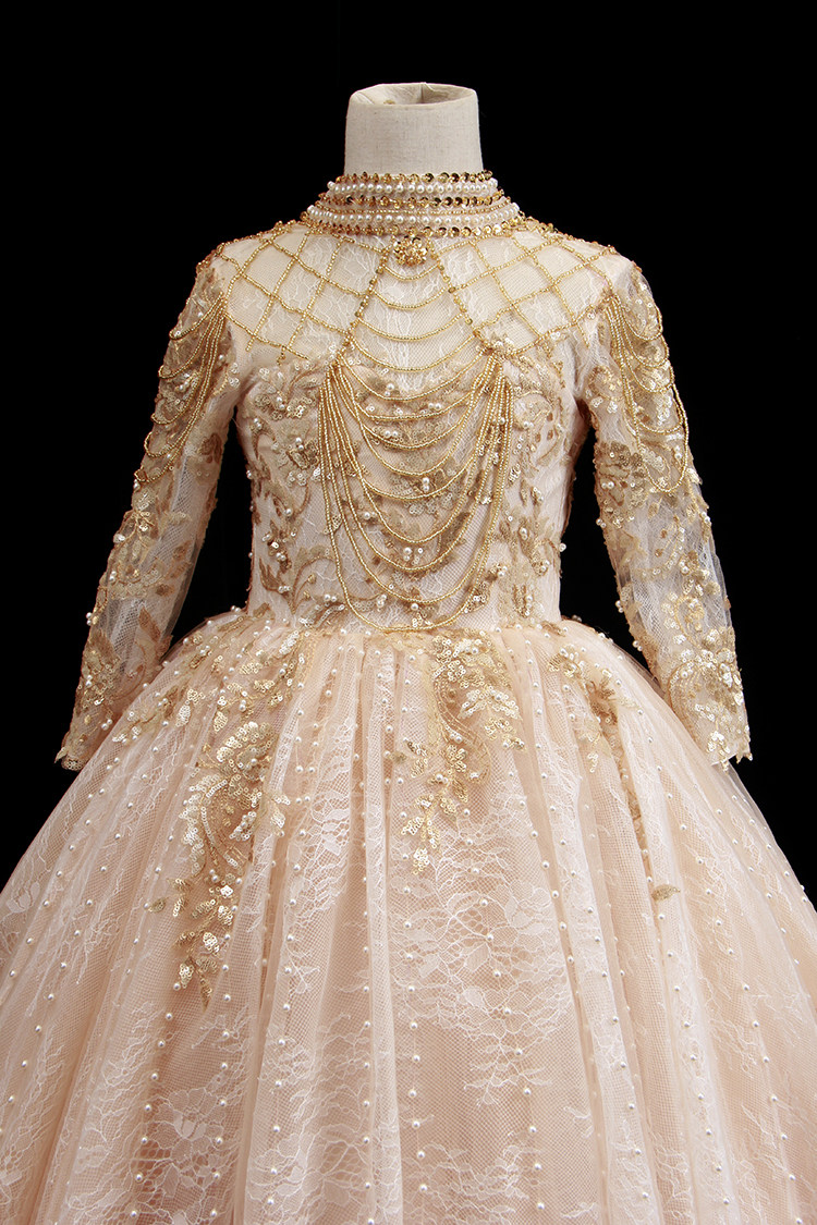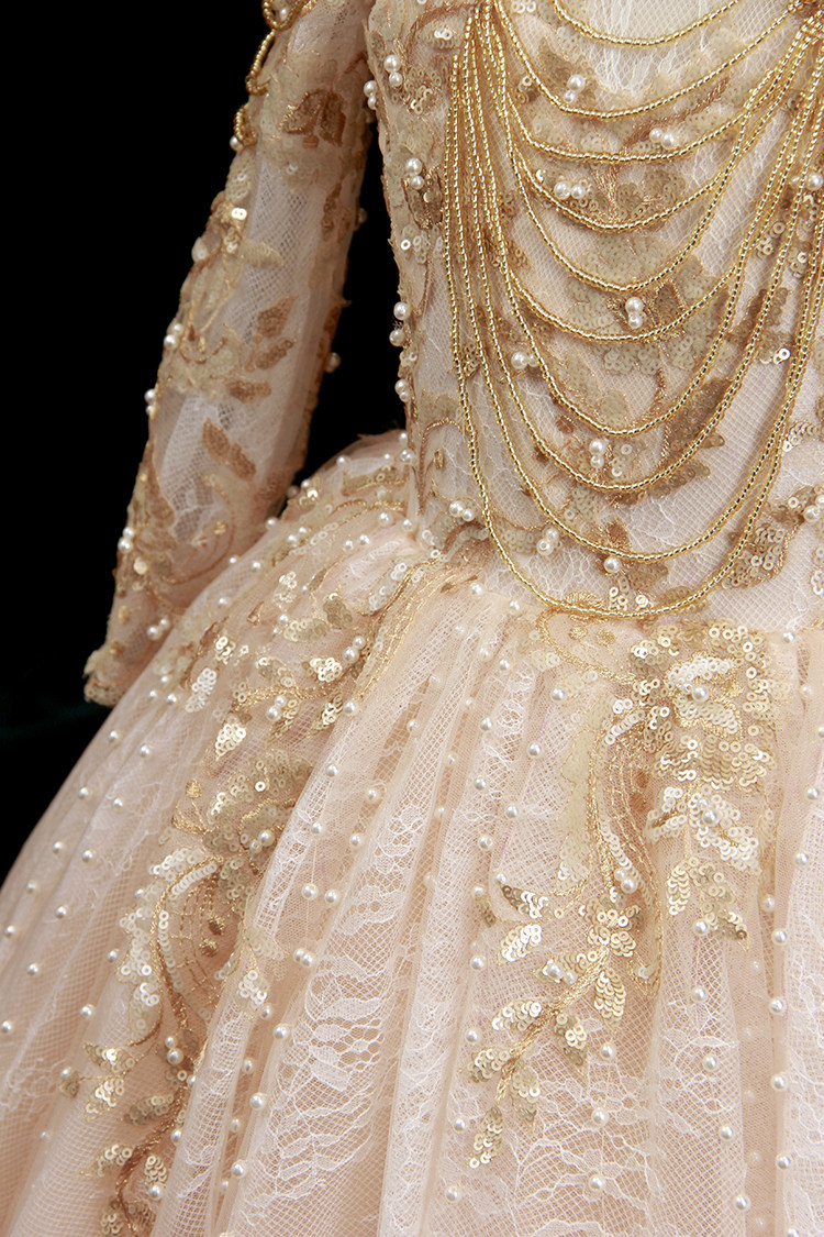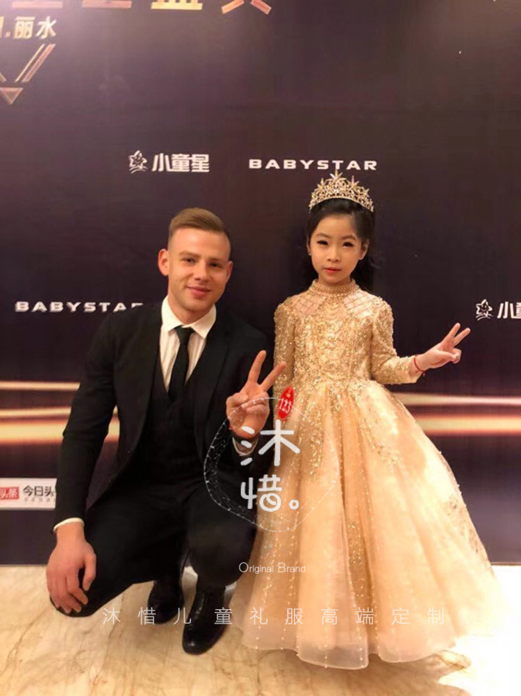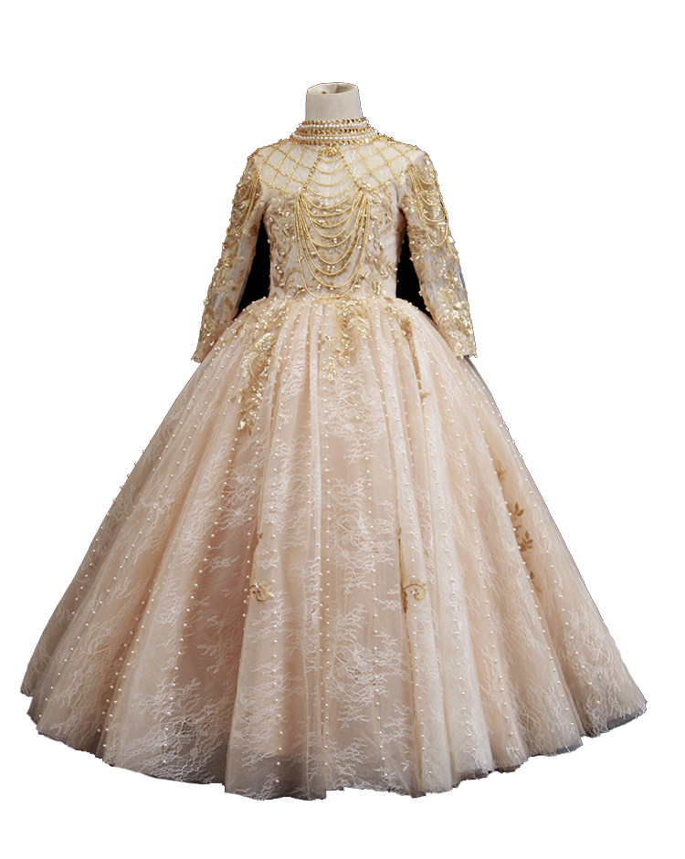 Children's gown 2021 new long sleeves champagne high collar gown The fluffy dress Fairchild Molt Contest is out of service to host-Taobao