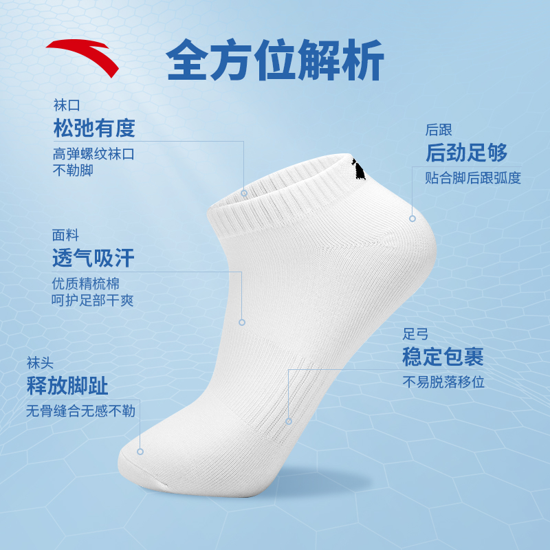 Anta sports socks 2021 new summer invisible socks invisible socks short socks medium socks long socks 3 pairs of flat socks comfortable