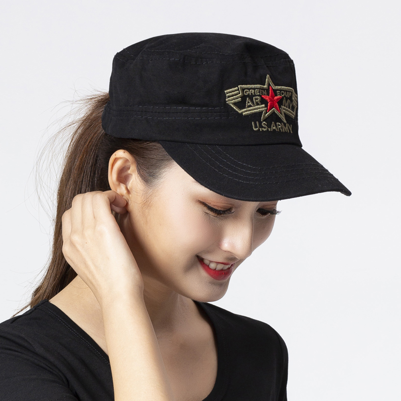 Autumn and winter New sailor dance cap black military fan cap cotton camouflage flat cap embroidery baseball cap casual sun hat