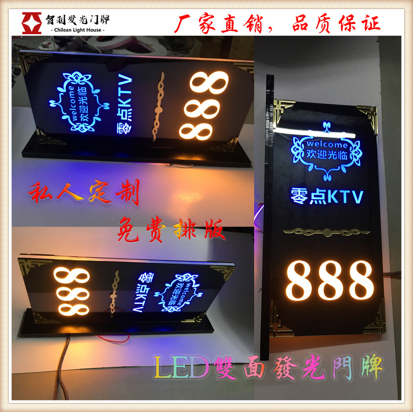 LED Luminous KTV Door Card Creative Belt Light Foot Bath City Digital Number Hotel Guest Room room door plate No.