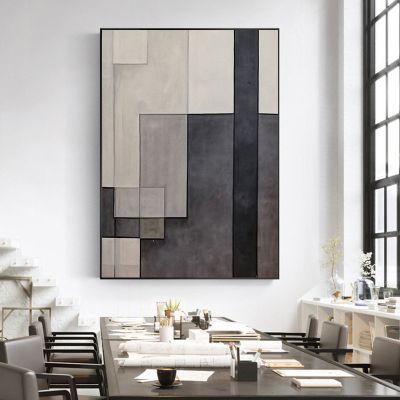 Hand-painted Oil Painting Abstract Black & White Color Block Aisle Entrance of the family Xuanguan hanging painting Nordic Modern Living room Background wall Decorative Painting