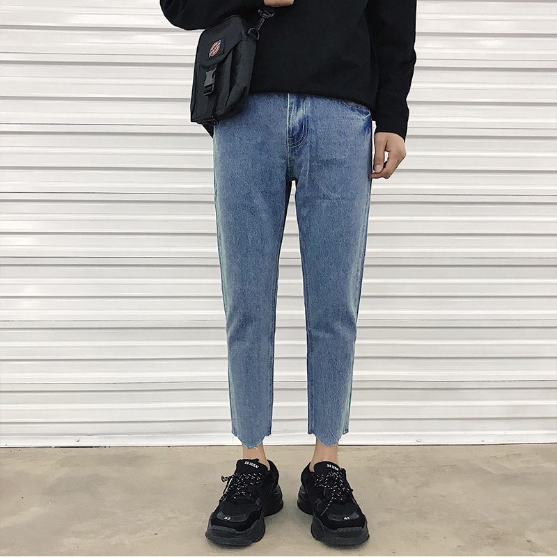 Men's pants Casual jeans Slim straight tube net red pants Male shake ins drop sense wide legs Hong Kong trend Pai Gow points