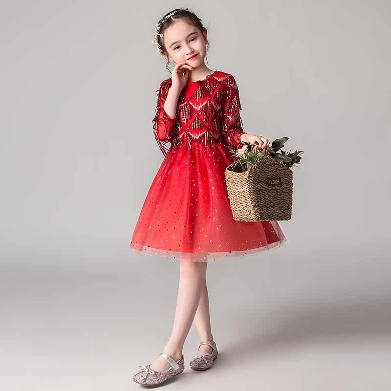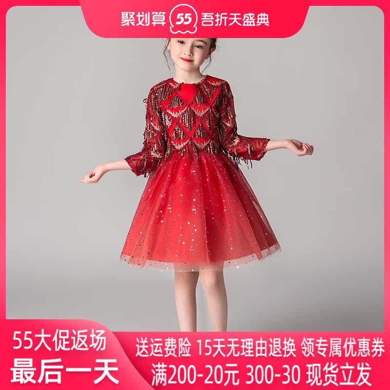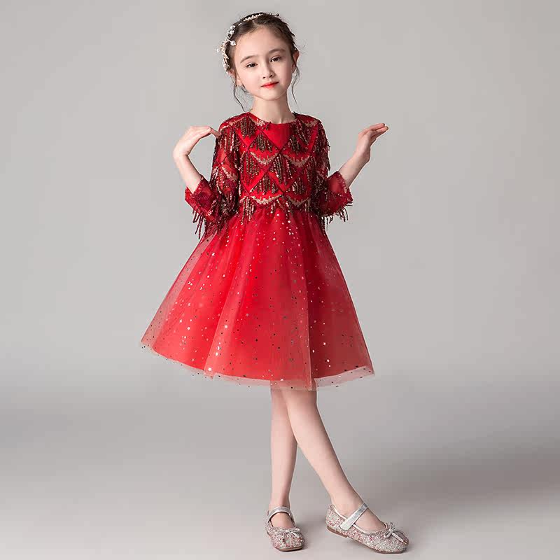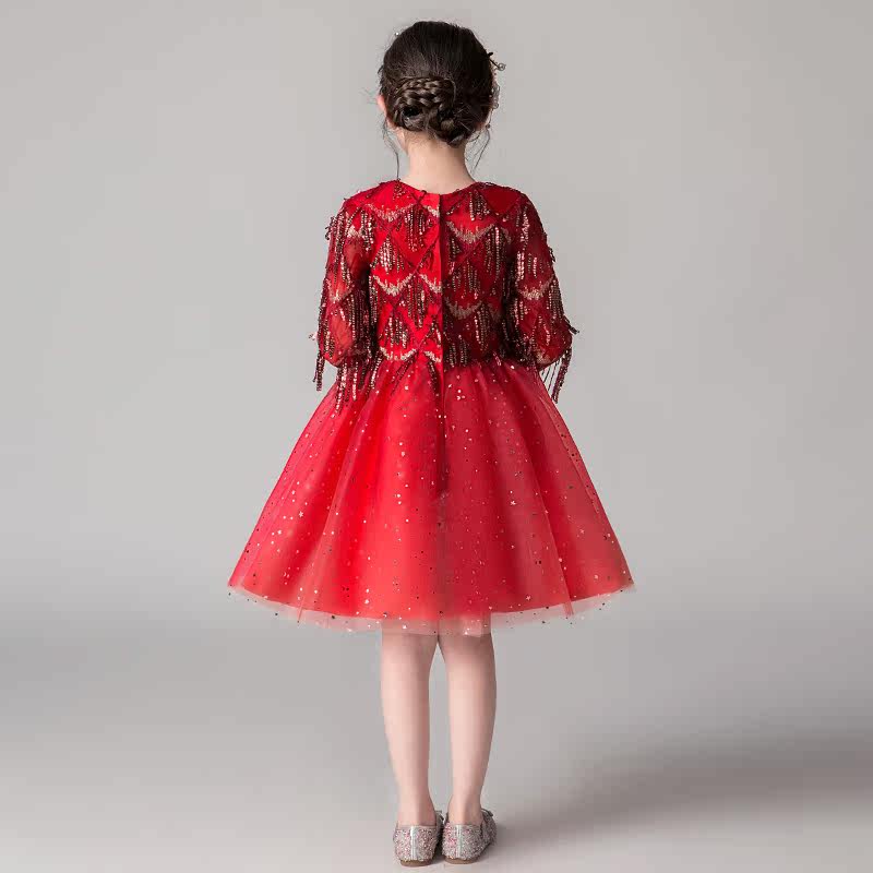 Children's Gown Princess Dresses Dresses Dresses Dresses Girl Wedding Dress Girl Birthday Walk Show Fluffy Yarn Little Host Piano