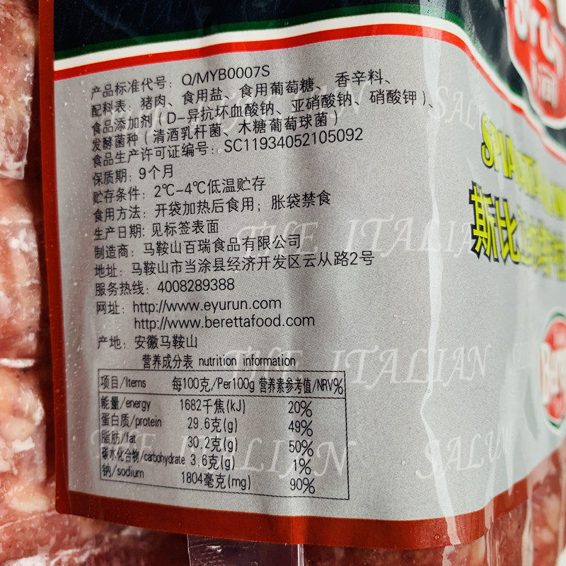 Original Yurun Beretta Spianata Salami Fermented Meat Food Spianata Salami