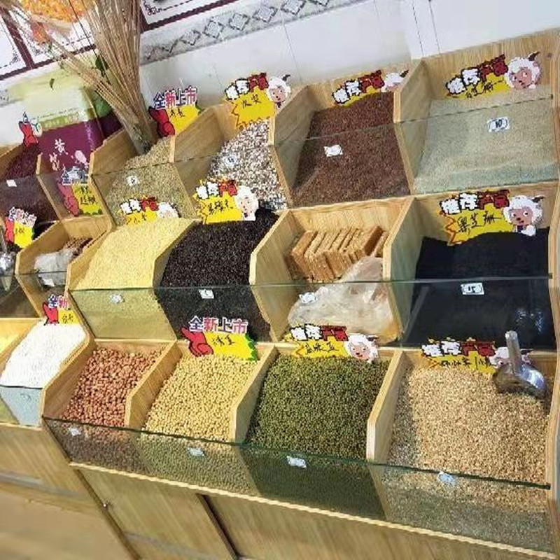 Cereals shelf display stand supermarket grain and oil shop condiment display cabinet ladder shelf trapezoidal snacks in bulk