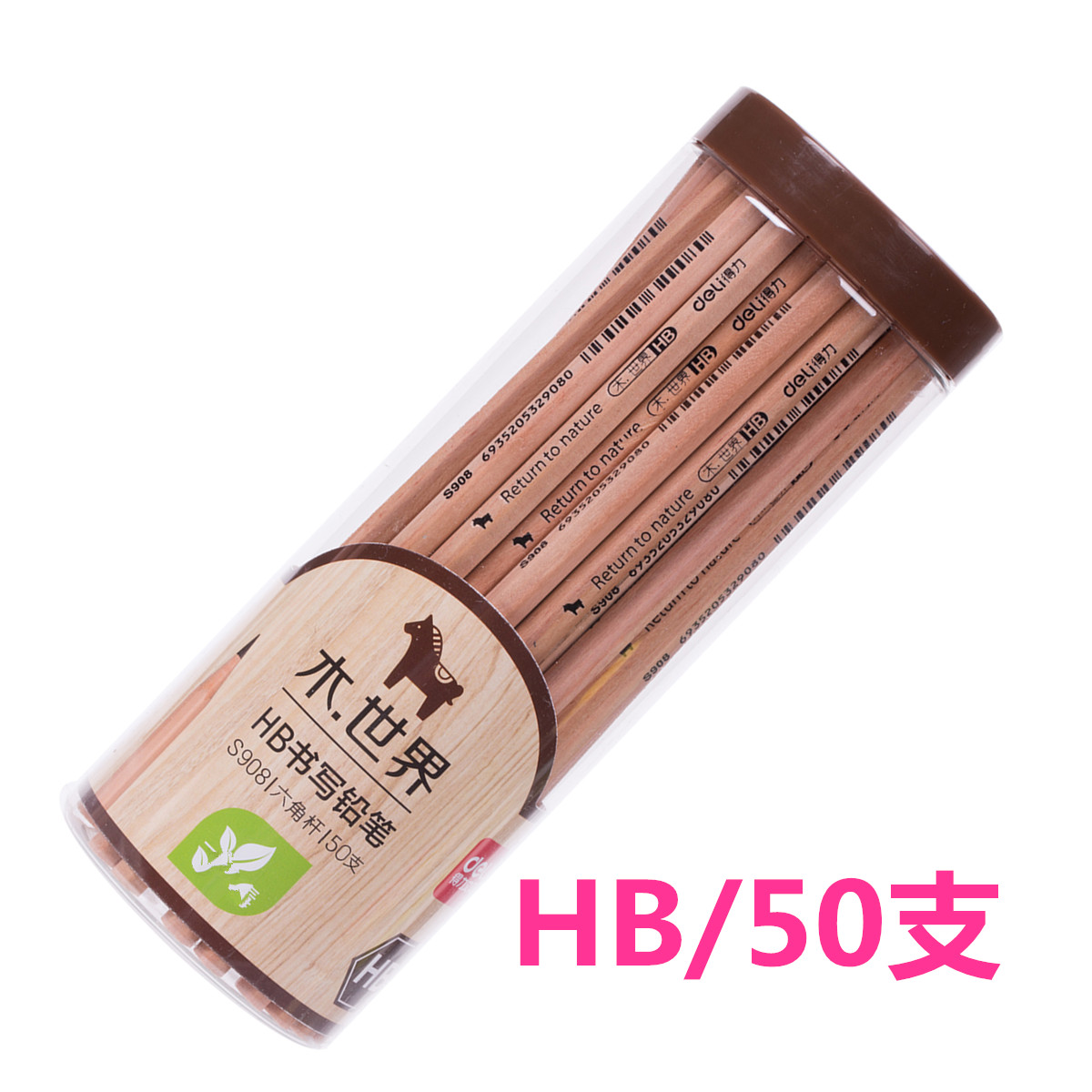 Powerful stationery S908 primary school pencil HB pencil 50 barrels log children's sketch painting exam hexagonal 2B pencil toddler beginner writing HB painting graffiti pencil