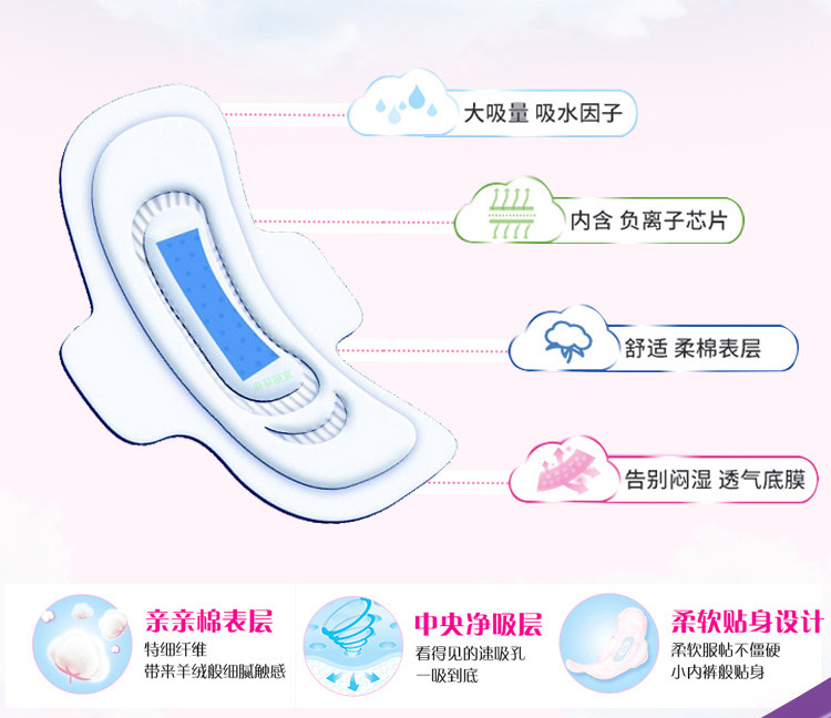 Green Leaf Sanitary Napkin Daily and Night Pad Mixed Negative Ion Ultra-thin Breathable Aunt Towel