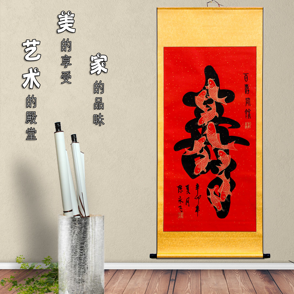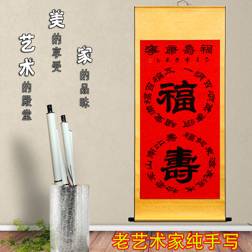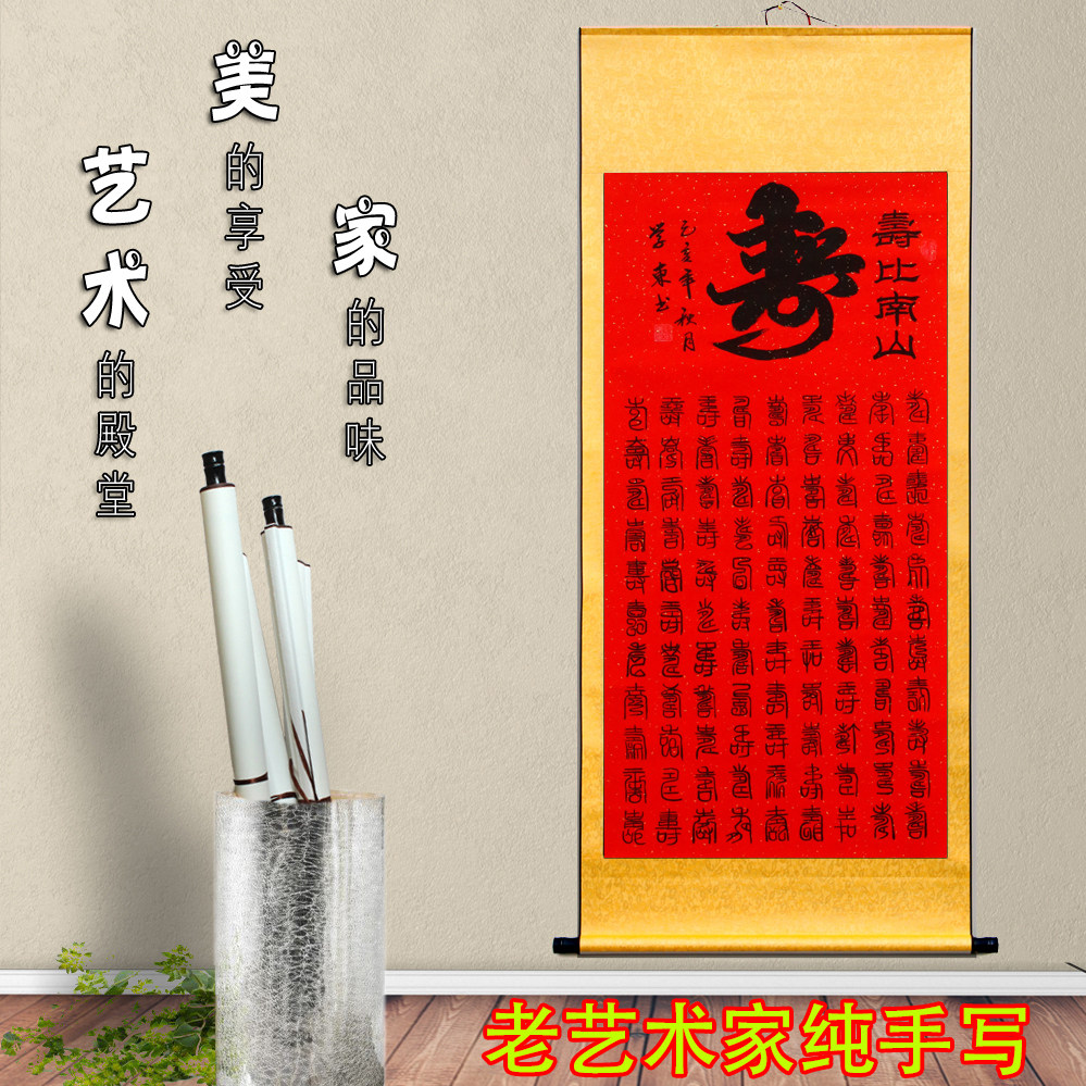 Calligraphy calligraphy Shou Character Authentic Hundred Life Diagram Calligraphy and Painting To send the elderly to the elderly birthday celebration gifts have been framed and hung paintings