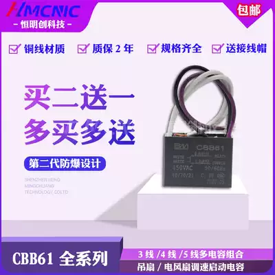 CBB61 2UF 3UF 400V 450V 4 wires dual 2 capacitive fan diao shan deng capacitance