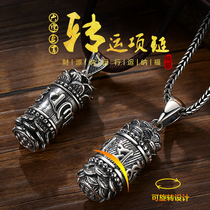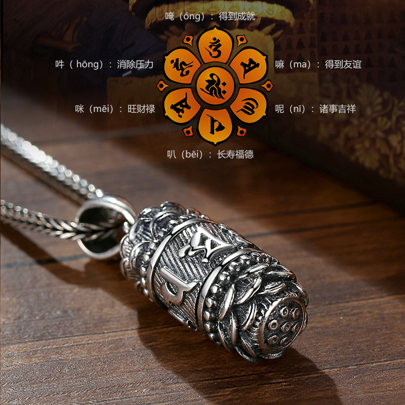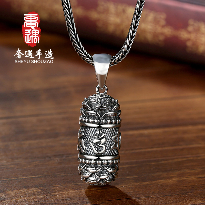 Luxurious encounter 925 sterling silver lotus six-character mantra pendant male Shurangama mantra body necklace Gawu box peace charm pendant