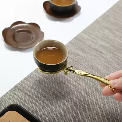 Songsitai stainless steel cup Fork copper cup fork tea tray cup holder hygienic and convenient anti-hot and anti-shake tea ceremony accessories