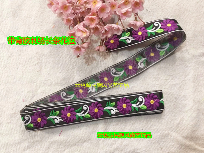 Machine embroidered accessories strip lace embroidered bouquet Purple Rhyme National Wind Clothing Embroidered Lace Accessories A-15 #