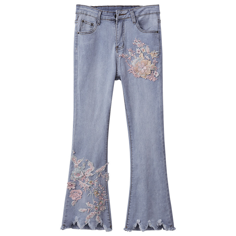 2022 spring and autumn new elastic slim fit slim three-dimensional embroidered nine-point wide-leg jeans women's high-waisted micro-flare pants