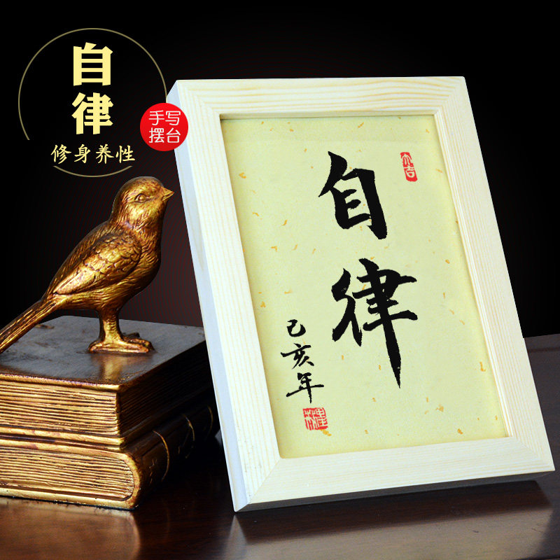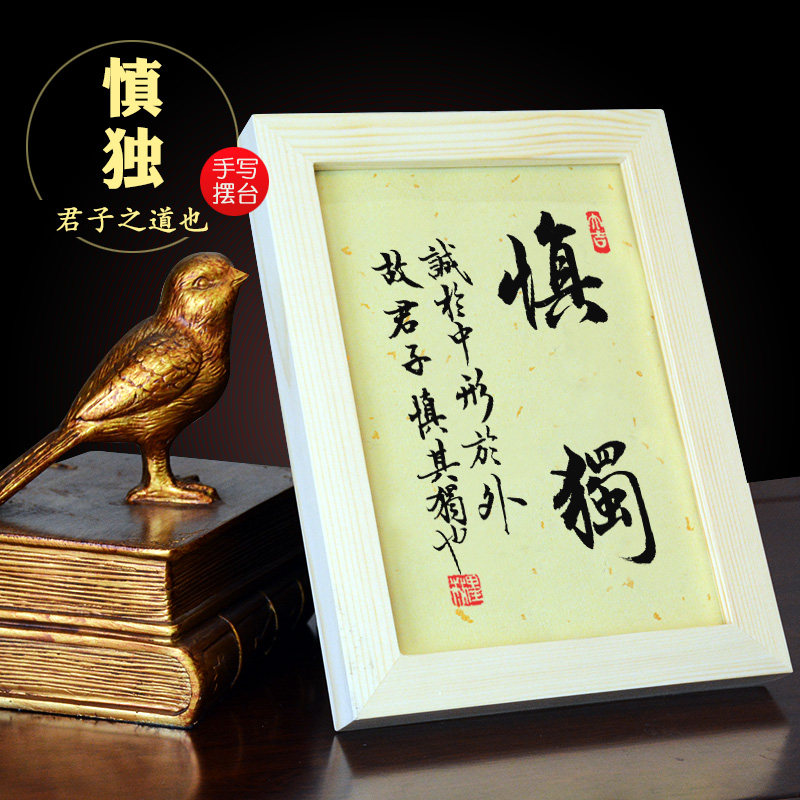 Handwritten calligraphy, solid wood table