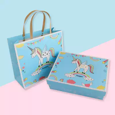 Blue unicorn paper bag powder unicorn paper bag powder Princess letter paper bag Blue Prince letter paper bag powder unicorn gift box broken paper card (no bag) blue unicorn gift box broken paper card (no bag)