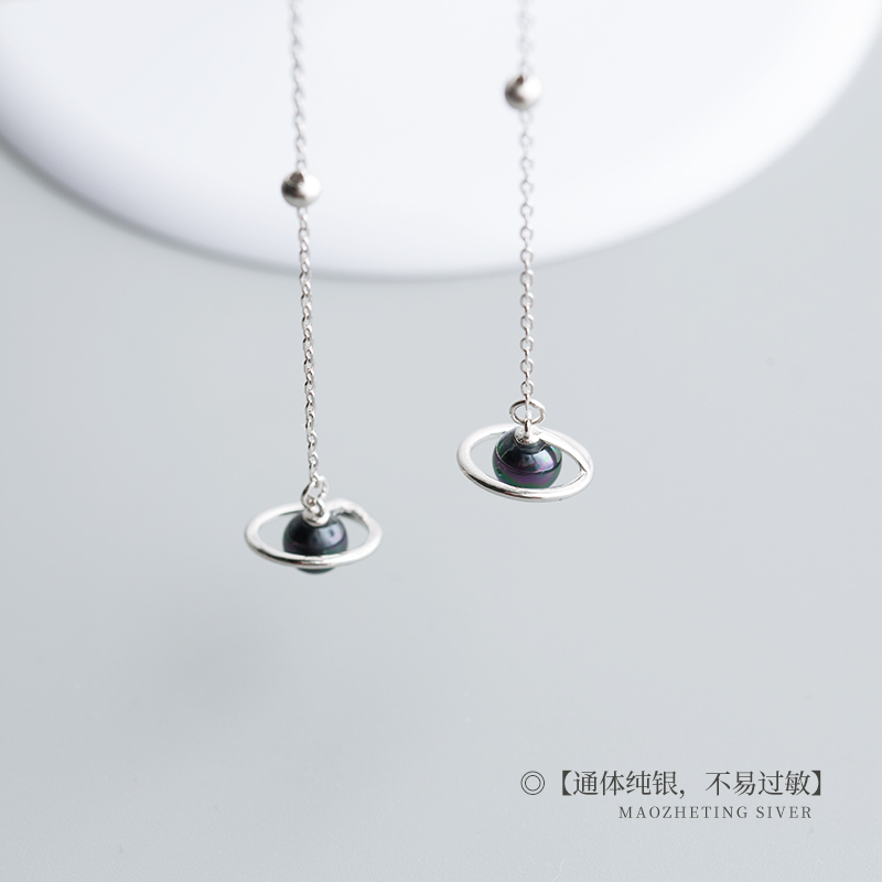 Cat sting universe star S925 sterling silver earrings Female long version niche design temperament personality simple drop earrings earrings