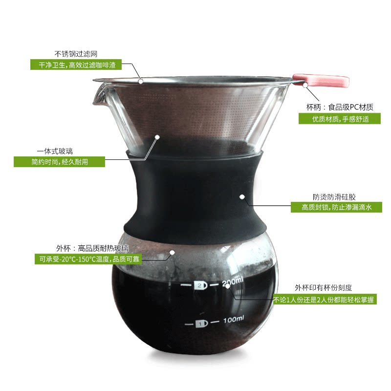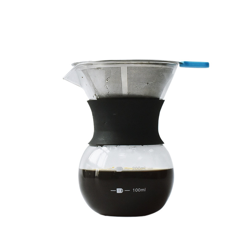 Grui hand brewed coffee filter pot coffee filter with double filter stainless steel thick glass 200ml