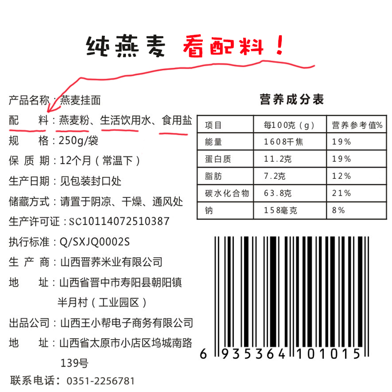 Wang Xiaobang brand Pure oat noodles staple food noodles oats noodles oats noodles hot water bubble noodles without cooking
