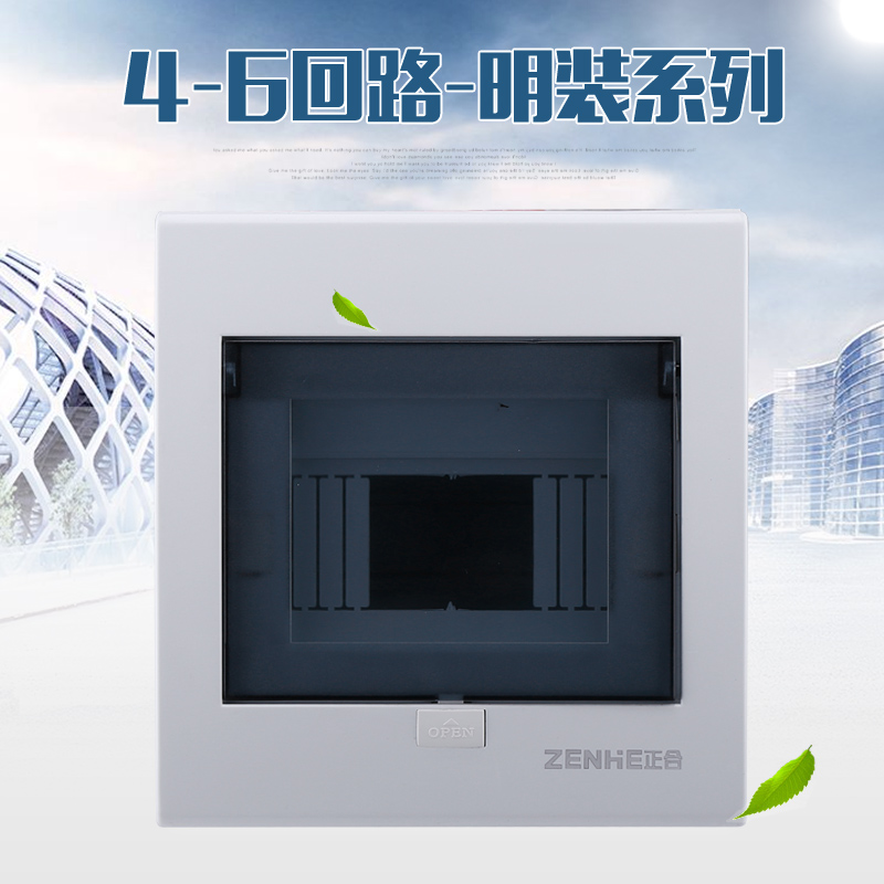 Strong electric wiring box Household distribution box 4-6 circuit empty open box PZ30 indoor surface mounted iron bottom plastic surface