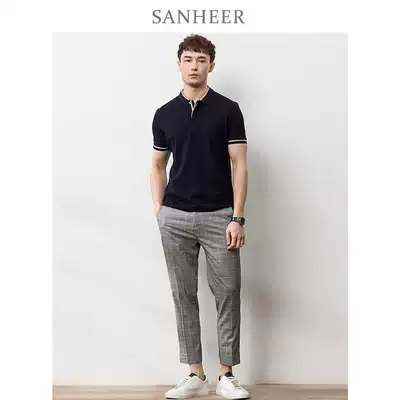 Summer elegant gentleman fixed spinning PIMA cotton bead ground material business men's lapel short-sleeved T-shirt men's DAT746