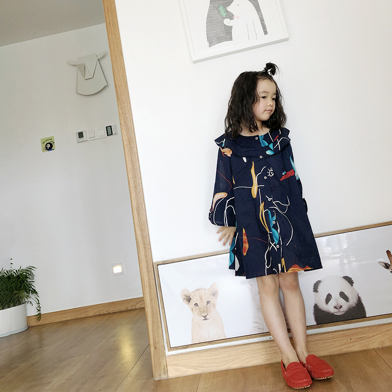 Pear small idle child clothing 2021 Summer new cute childlike printed foreign dress E91L1912