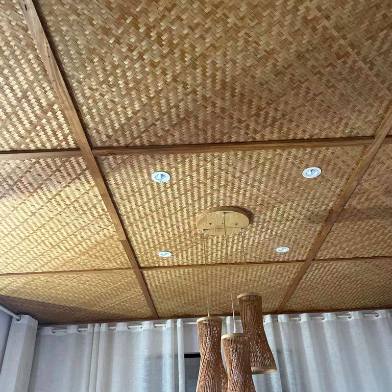 Vintage ceiling bamboo mat mat homestay project old-fashioned decoration decoration wall carbonized grass mat garden cool mat