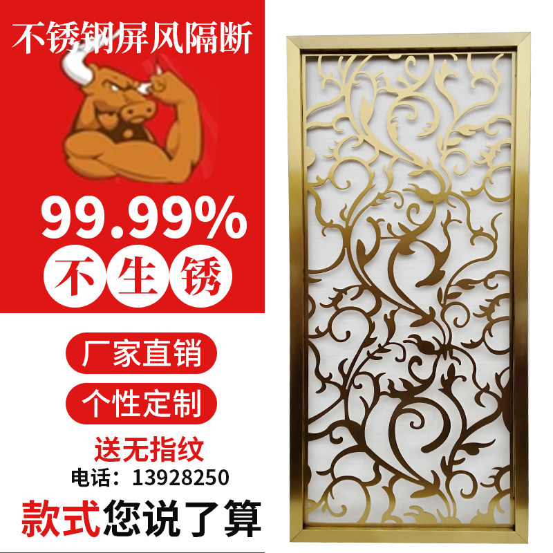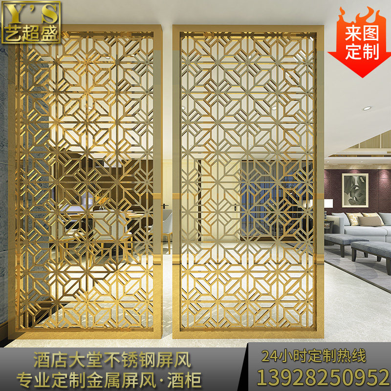 Stainless steel screen partition custom cutout carved light luxury titanium rose gold guest restaurant entrance lattice new Chinese style