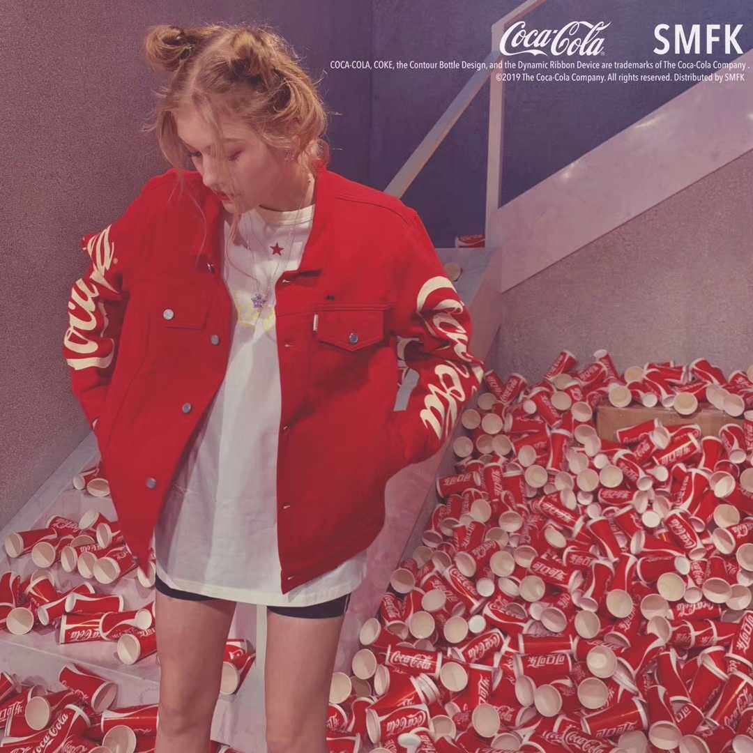 Shunfeng (official direct mail) SMFK China Red Coca-Cola denim cotton men and women jacket jacket