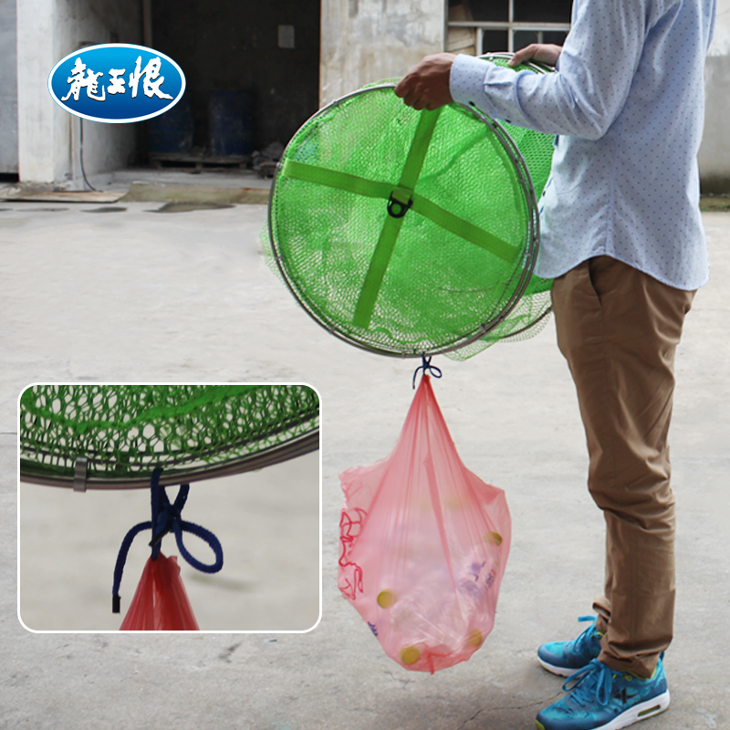 Dragon King hates fish guard Stainless steel competitive double-circle fish guard Black pit glued fishing net Folding fish cage net pocket