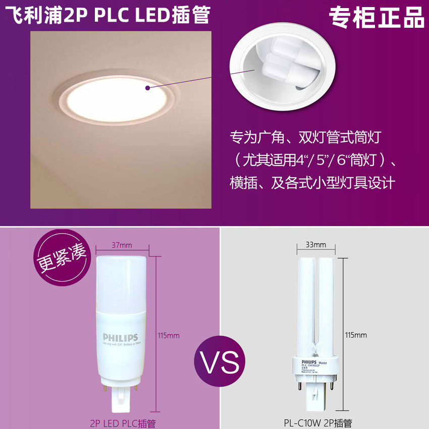 Philips LED plug-in tube PLC downlight horizontally inserted two-pin 2P bulb 7 5w9w26 light source 220V energy saving